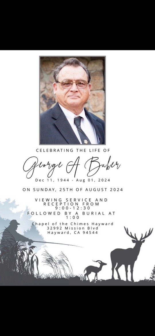 With a broken heart I share the sad news that my beloved brother, George Baker passed away recently at his California home. He got very ill and couldn’t travel back to his “Rocking G Ranch” in Colorado that he so loved so dearly. His plan was to get well - drive back to Colorado then come visit us His Texas Family! He enjoyed Texas when it wasn’t scorching hot! God had other plans though… he took away George’s pain and suffering and took him home to Heaven where he is reunited with family and friends who awaited his arrival for a glorious reunion….. and someday we’ll join him in God’s Heavenly Kingdon🙏 >